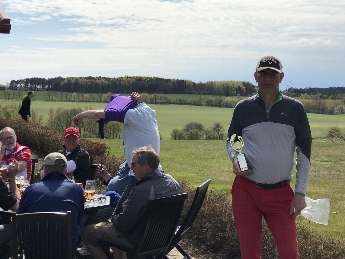 Årets kegle tog klubejeren sig af (efter voldsomt gruppepres)…..man skal ikke samle bolde op på golfbanen uden man er helt sikker på den ikke er i spil!